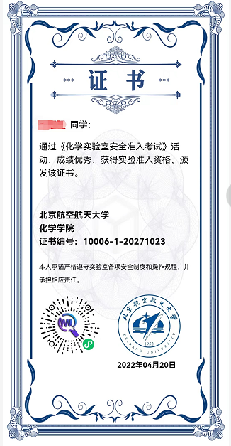 本次活动涉及较为全面的化学实验室安全知识,从进入实验室的个人防护,到对火灾、漏电等突发情况的处理,再到各类危险化学试剂的管理与使用方法,以及实验仪器的安全使用,共分为10个部分向员工提供化学实验室安全教育。其中,每个部分包含若干道安全知识考察题目,全部回答正确能够获得化学实验室安全准入证书,并取得物理化学实验安全准入资格。全面的安全知识,严格的考察题目,更好地提高了员工对于化学实验室安全知识的学习效果。